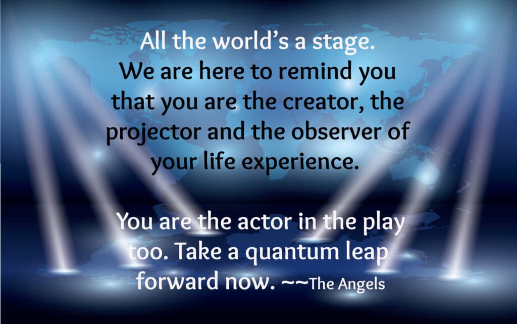 We say you are the creator, the projector, and the observer of your life experience. What about the actor? You are the actor in the play, too. Who you are is reflected in all the parts.